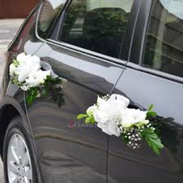 Ofrecemos vehículo decorado para transportar a la feliz pareja desde la casa de la novia-iglesia-sesión de fotos.